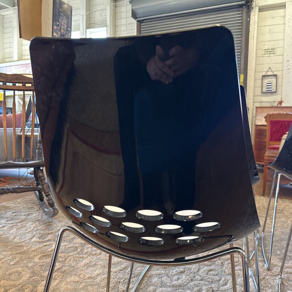 The Calligaris Jam Chair set of 6 brings a vibrant blend of contemporary design and ergonomic comfort to any modern dining space. Each chair features a distinctive two-tone technopolymer shell with a glossy white front and a translucent colored back, punctuated by playful oval cutouts that add visual interest and lightness. Supported by sleek, chrome-plated metal legs, the chairs offer a sturdy yet stylish foundation. Their gently curved seats and backrests provide excellent support, making them ideal for long dinners or lively gatherings. Perfect for those who appreciate bold design and Italian craftsmanship, this set adds a pop of personality to kitchens, dining rooms, or creative workspaces.