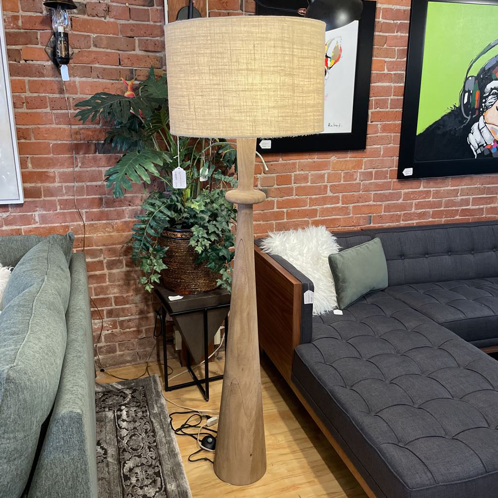 Bring organic elegance and soft illumination to your space with the Dark Natural Wood Turned Floor Lamp. Crafted with a beautifully sculpted wooden base, this lamp features a smooth turned design that showcases the natural grain and tone of the wood. Its neutral drum shade completes the look with understated sophistication, making it perfect for living rooms, reading corners, or cozy bedrooms.