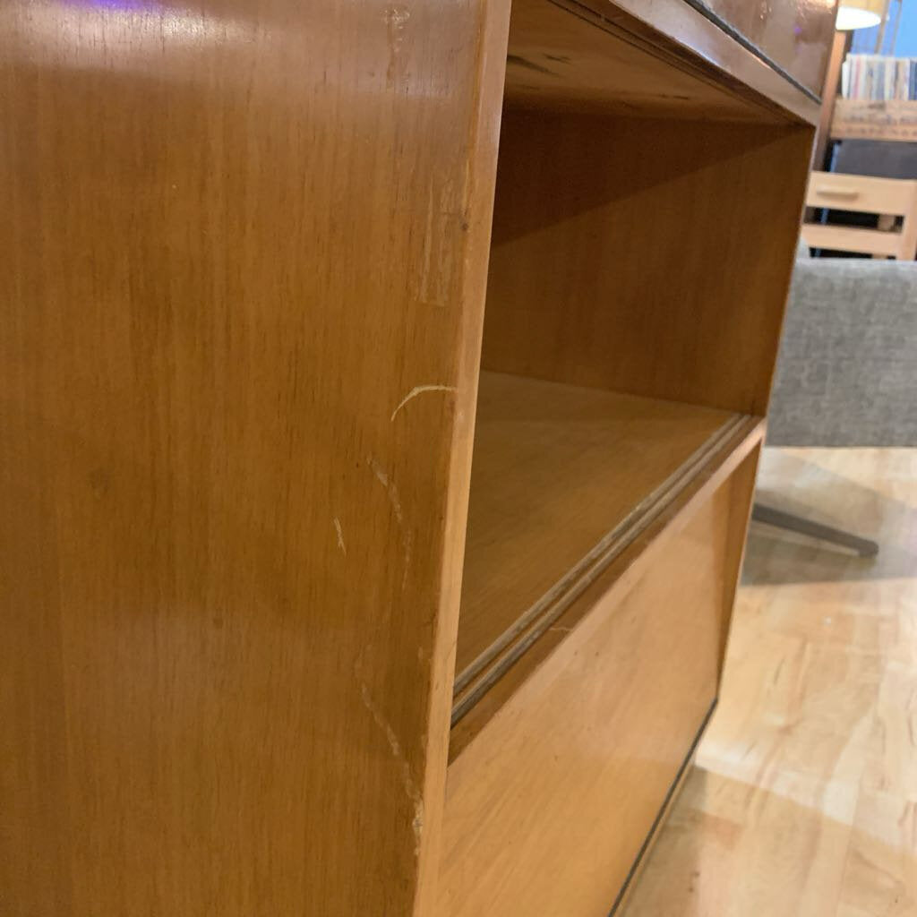 This Light Wood Pull Out Bar Cabinet offers a clever, space-saving design with its versatile fold-down compartments and integrated bottle storage. The warm, natural wood finish and sleek mid-century silhouette conceal a fully functional bar setup, complete with mirrored surfaces and dedicated slots for glassware, making it a sophisticated and practical addition to any entertaining space.
