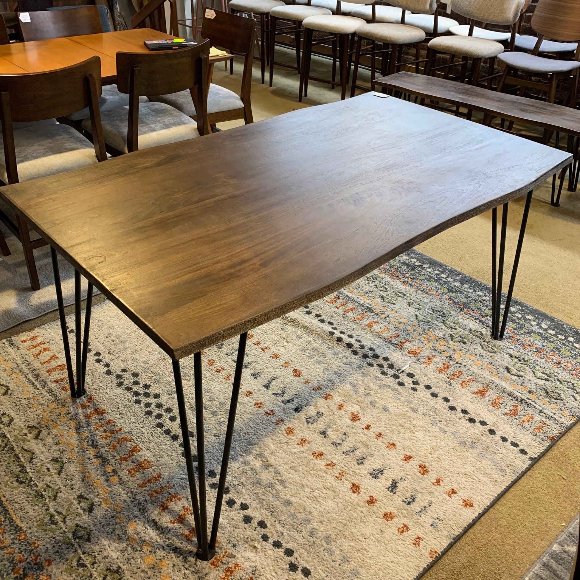 The Mango Cocoa Dining Table is a masterwork of organic industrial design and streamlined architectural utility. This authoritative centerpiece features a substantial rectangular tabletop crafted from mango wood, finished in a deep, rich cocoa stain that highlights the natural complexity of the wood grain.