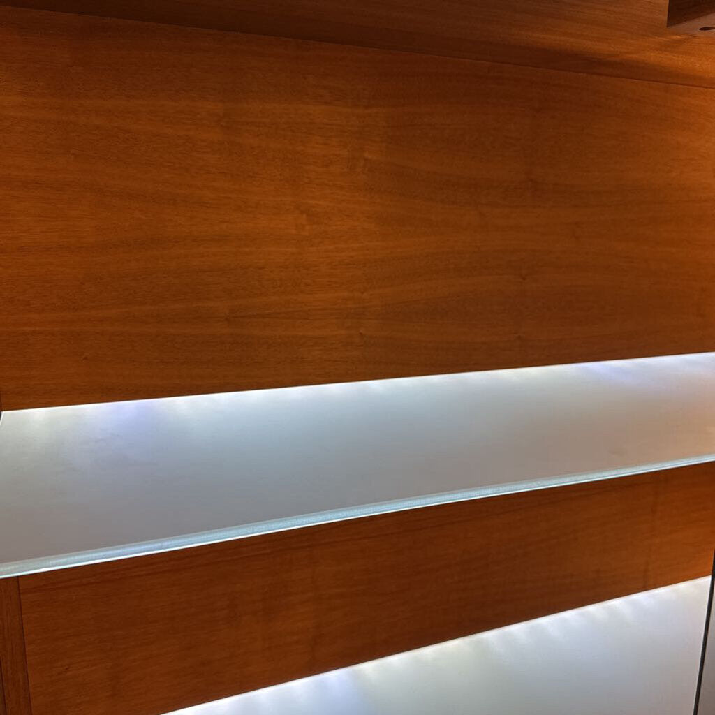 A modern contemporary style buffet with LED-lit floating glass shelves is the epitome of sleek sophistication. Its clean lines and minimalist silhouette create a striking centerpiece, while the illuminated shelves add both function and drama, casting a soft ambient glow that highlights fine glassware, décor, or dining essentials. The floating design of the shelves enhances the buffet’s airy, upscale aesthetic, making it feel light yet luxurious. Perfect for entertaining or elevating everyday dining, this piece blends cutting-edge lighting technology with timeless modern design, offering a stylish balance of practicality and visual impact.