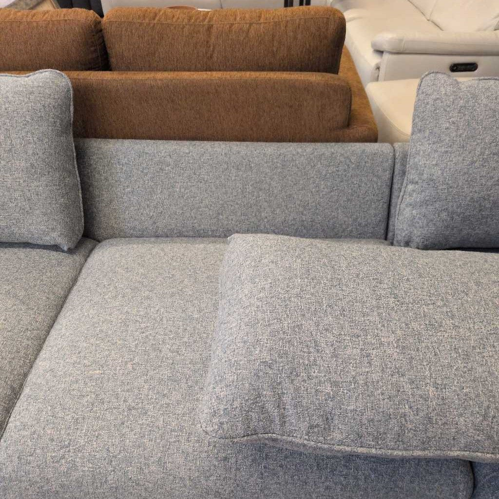 The Mod Seaglass RAF Chaise Sectional offers a clean, modern silhouette paired with inviting comfort, making it an easy anchor piece for a contemporary living space. Upholstered in a durable performance fabric, this sectional is designed to stand up to everyday use while maintaining its refined look, making it well suited for both active households and relaxed lounging. The right-arm-facing chaise provides generous room to stretch out, while the tailored profile and soft seaglass tone keep the overall feel light, fresh, and versatile across a range of interiors.