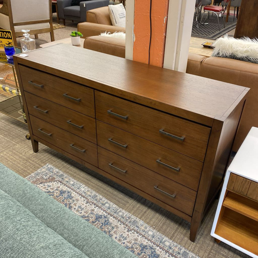 The Niko Dresser is a stylish and functional lowboy dresser featuring a rich walnut finish that brings warmth and sophistication to any bedroom. With six spacious drawers, it offers ample storage for clothing, linens, and everyday essentials while maintaining a sleek, streamlined profile. Designed with clean lines and a modern silhouette, the Niko Dresser blends effortlessly with a variety of décor styles, from contemporary and transitional to mid-century modern. Its durable construction and elegant walnut finish make it both a practical and visually striking addition to your bedroom or dressing area.