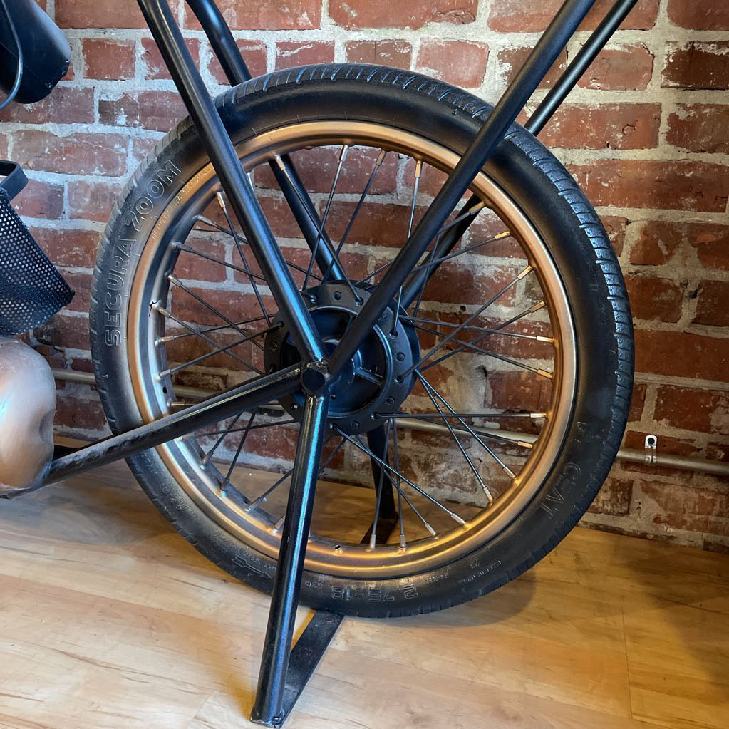 Turn heads and spark conversations with the Racer Bar Counter, a stunning fusion of industrial craftsmanship and vintage automotive flair. This statement piece captures the raw energy of a classic motorcycle, reimagined as a sophisticated hub for entertaining.