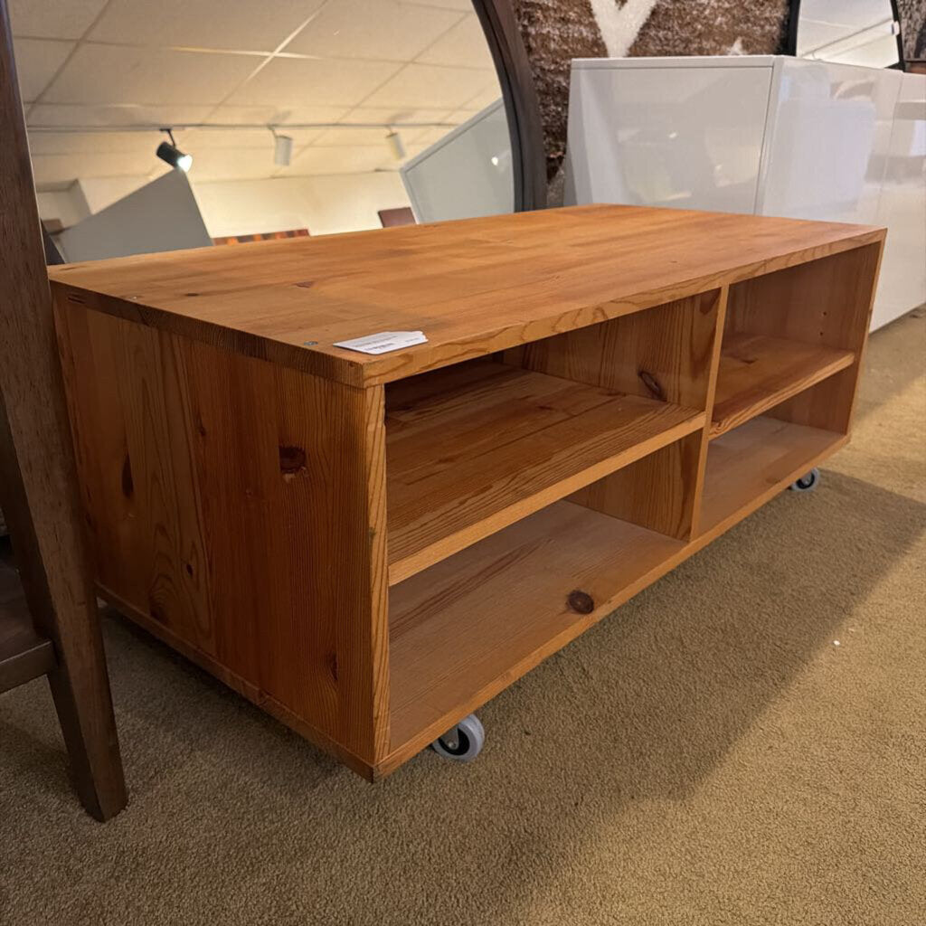 This rectangular pine chest doubles beautifully as a media stand, offering a warm wood finish and open shelving for easy storage and display. The clean, straightforward design makes it a versatile piece for living rooms, bedrooms, or entryways. Use it to hold media components, books, baskets, or décor—an easy blend of function and natural style that works in both casual and modern spaces.
