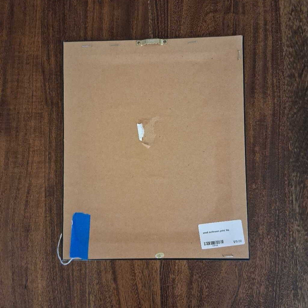 Soft hues and floral accents make this Small Bathroom Print a lovely finishing touch for your bath or vanity area.
