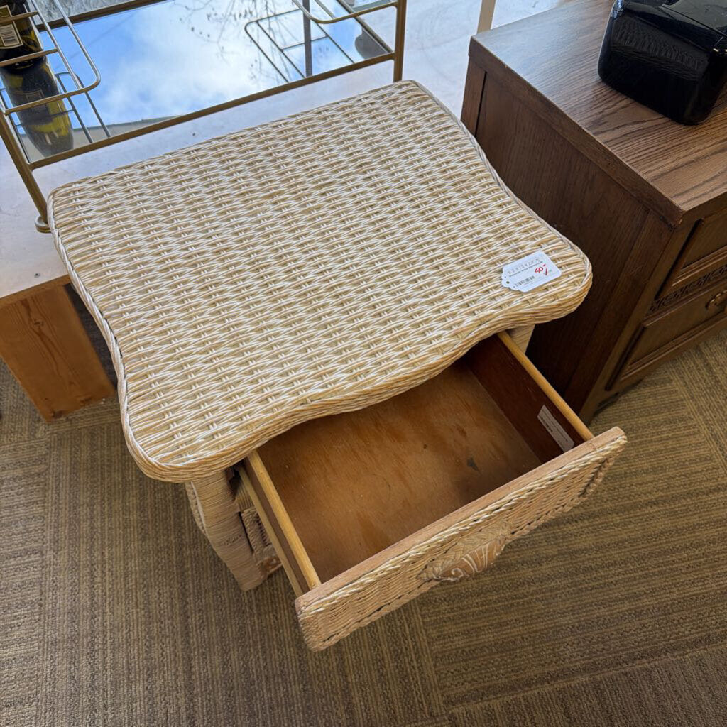 Add breezy, coastal charm to your space with this Whitewash Wicker Nightstand. Featuring woven wicker construction, shell-shaped drawer pulls, and softly curved edges, this piece brings a relaxed, beachy feel while offering practical bedside storage. Its two drawers are perfect for stashing essentials, and the weathered whitewash finish adds character and warmth — ideal for coastal, boho, or cottage-style interiors.